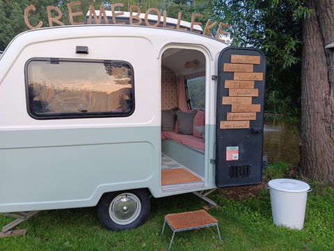 Wij zijn Dieter en Krista en bouwden een retro caravan om tot een ijssalonnetje op wielen. Zo werd het crèmebolleke geboren. Ons ijs, jouw momentje.